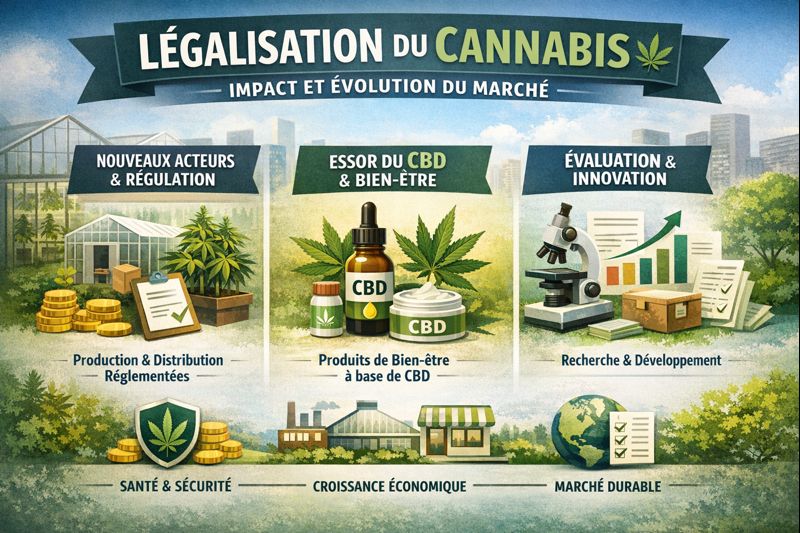 En conclusion, la légalisation du cannabis ne se limite pas à une réforme sociétale : elle agit comme un catalyseur pour le marché du CBD, qui s’impose progressivement comme un secteur structuré, crédible et durable, au cœur des nouvelles attentes en matière de bien-être.